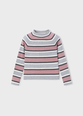 Long sleeved ultra soft and stretchy knit top with high neck collar.
