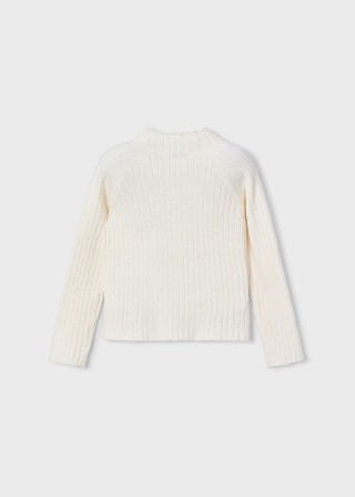 Long sleeved ultra soft and stretchy knit top with high neck collar.