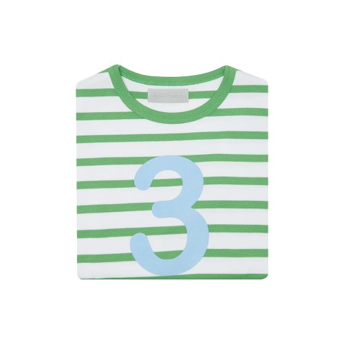 Breton striped cotton T shirt, featuring a large number screen print. Long Sleeve 100% Cotton Machine washable
