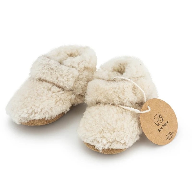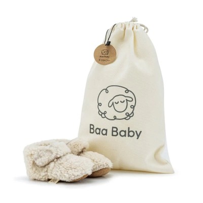 Baa Baby merino boucle booties are presented in their own mini cotton reusable gift bag so make them the perfect for a newborn baby gift