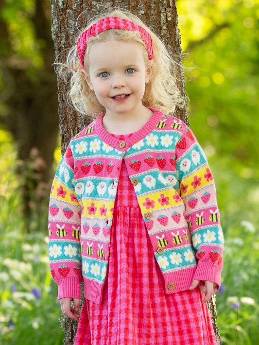 True to its name, our bright and beautiful cardigan features a jacquard design inspired by all of the lovely designs in our latest collection. An eclectic mix of cuteness!