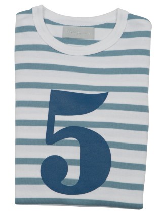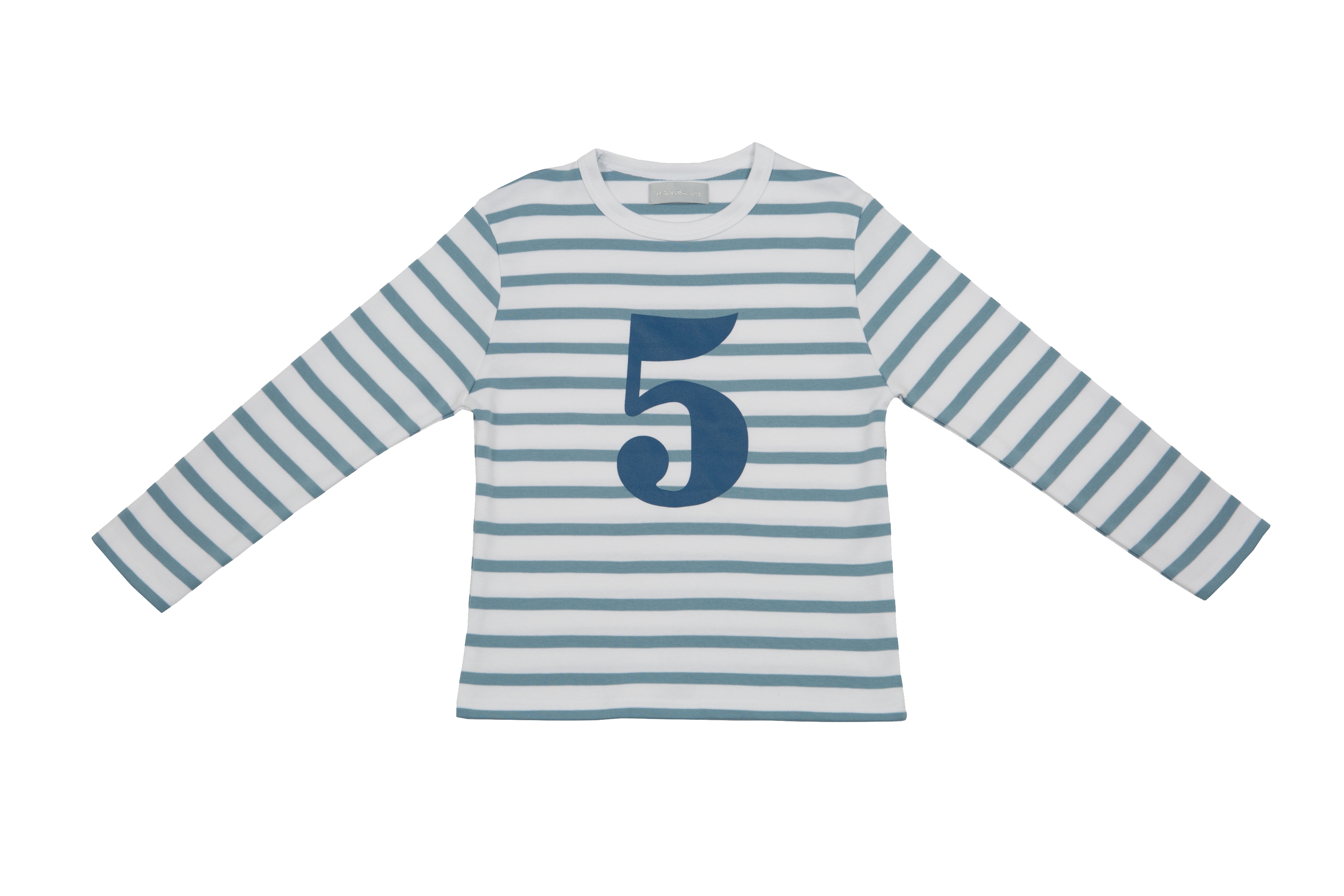 Breton striped cotton T shirt, featuring a large number screen print. Long Sleeve 100% Cotton Machine washable